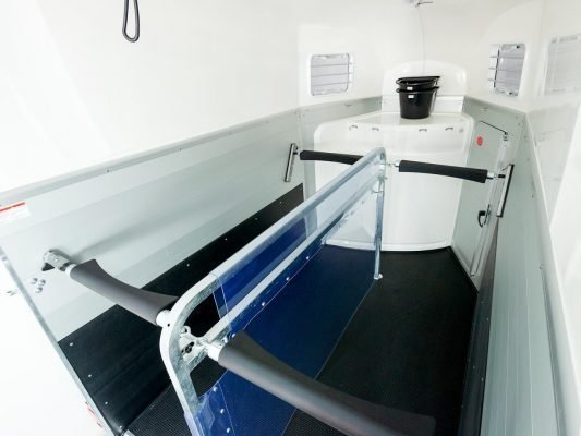 Toujours frais devant : grâce à la fenêtre avant réglable dans cinq directions, il n’y a pas d’air épais dans le XANTHOS AERO . Un déflecteur d’air installé de série et une trappe de toit pouvant être installée ultérieurement sur demande assurent également un apport d’air frais sans courant d’air. Mais le confort n’est pas la seule priorité chez Humbaur : la cloison verrouillable, les parois latérales en aluminium anodisé et le profilé de cadre galvanisé à chaud font du XANTHOS AERO une remorque pour chevaux stable et robuste pour les plus hautes exigences.